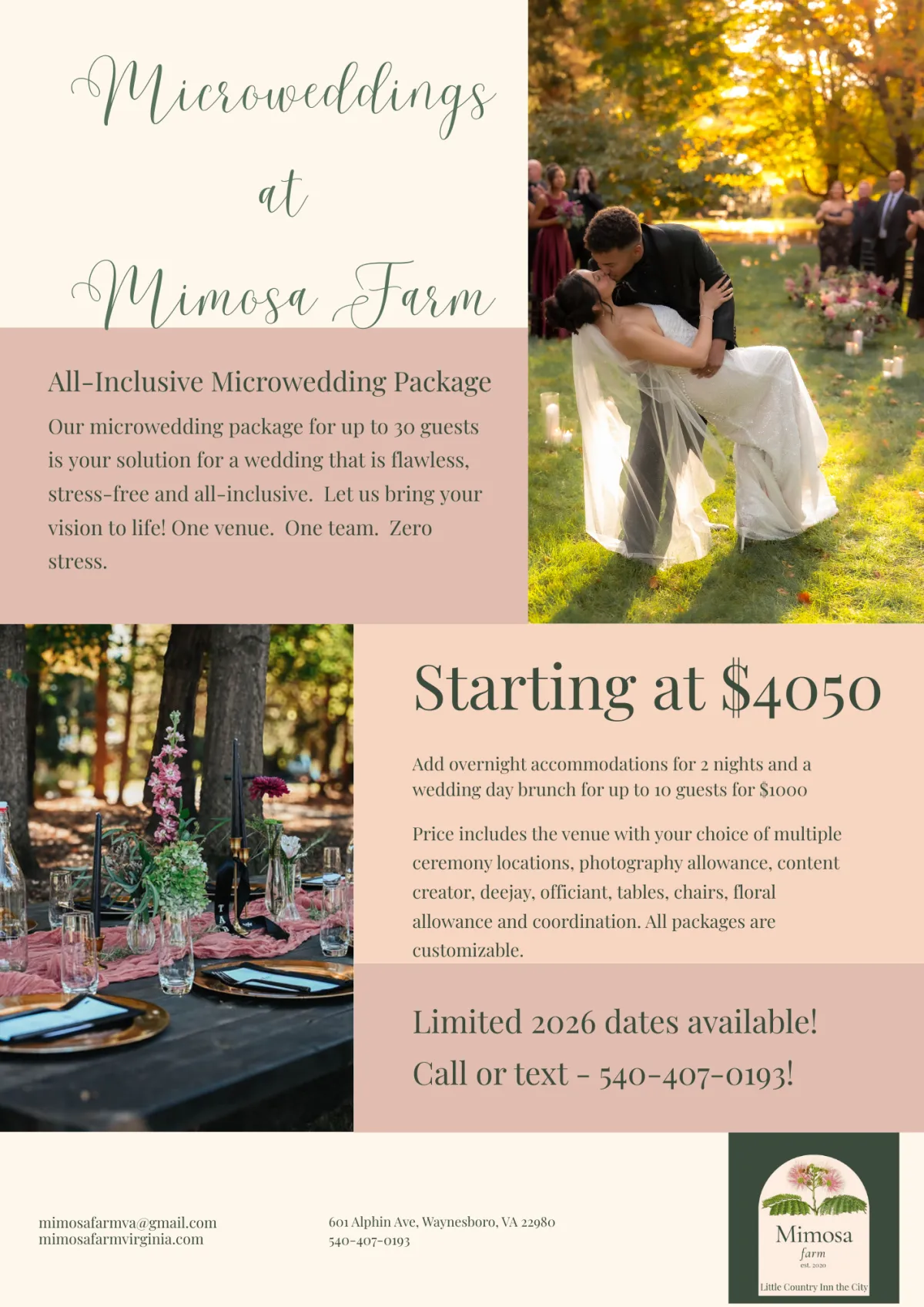 Contact us today to begin planning your unforgettable microwedding experience!